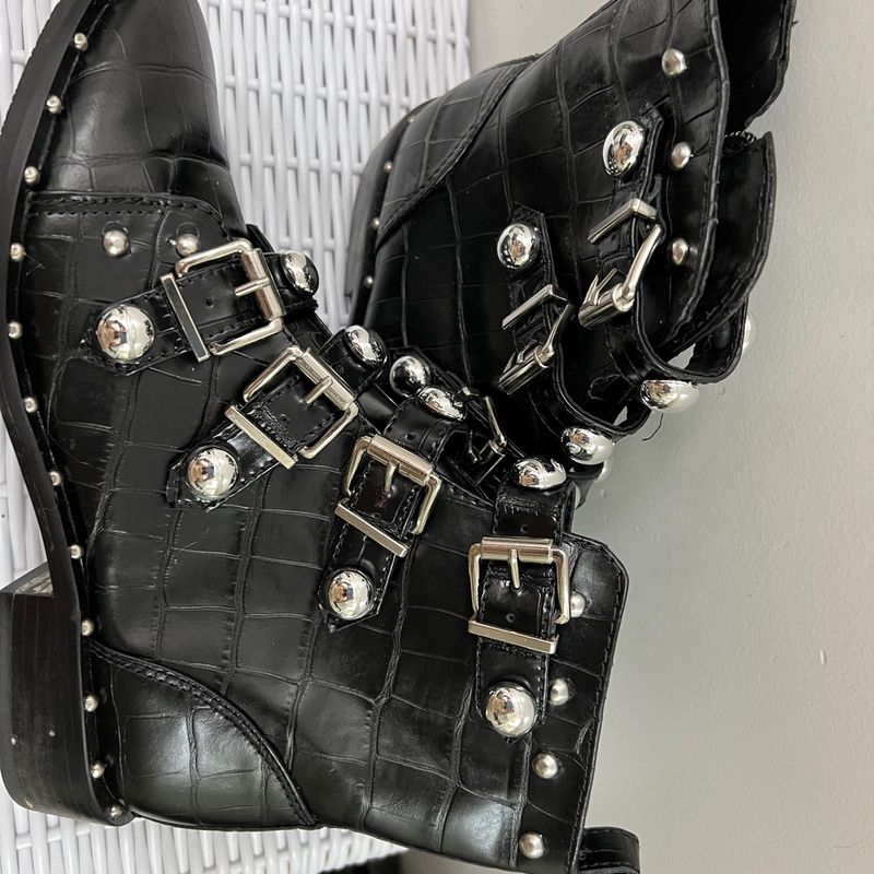 Bota Coturno Cano M dio Solado Baixo Tiras e Tachas Zutti Very well made.