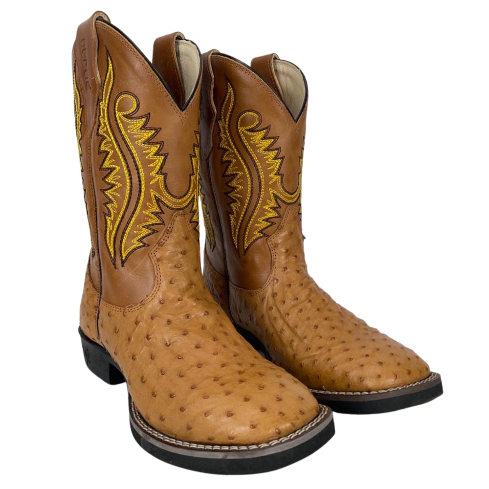 Bota Strut Masculina em Couro de Avestruz Cheio Whisky Very well made.