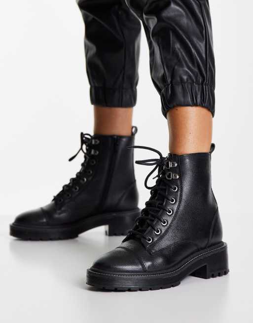 Botas militares negras cl sicas con cordones de cuero de River Island Very well made.