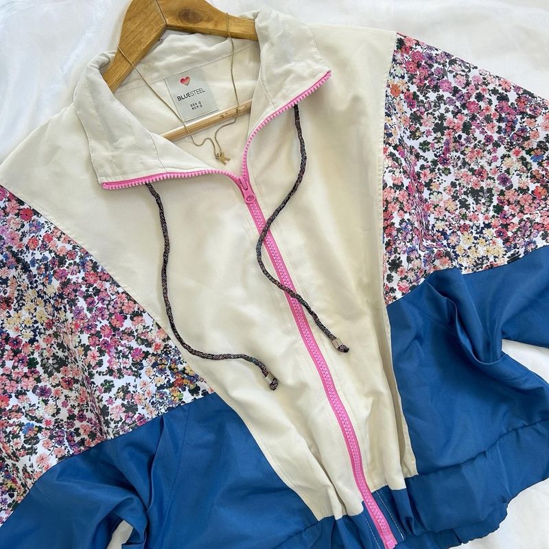 Jaqueta Corta Vento com Capuz e Recorte Azul Very well made.