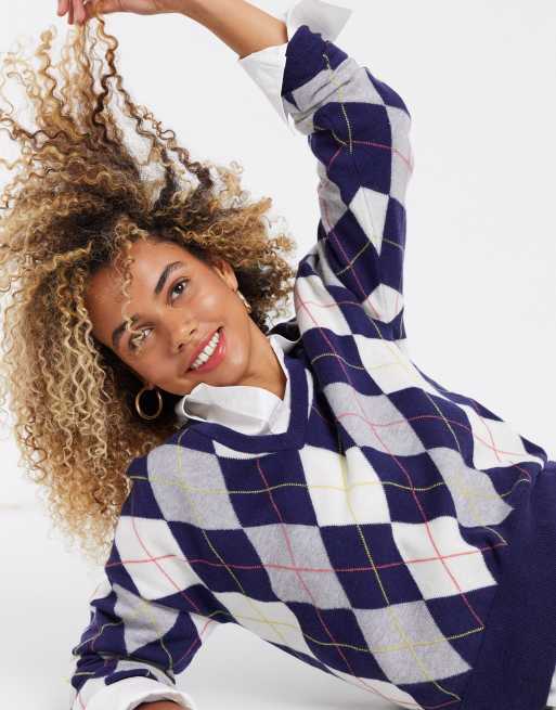 Lacoste diamond design v neck sweater in blue multi Very well made.