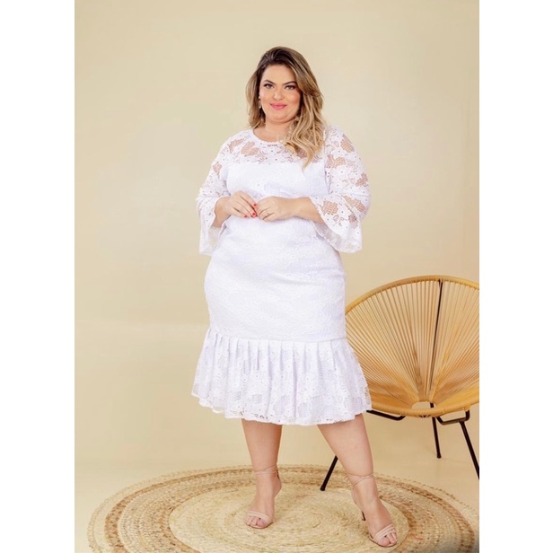 Vestido Plus Size Midi Branco Off Noiva Manga 3 4 Very well made.