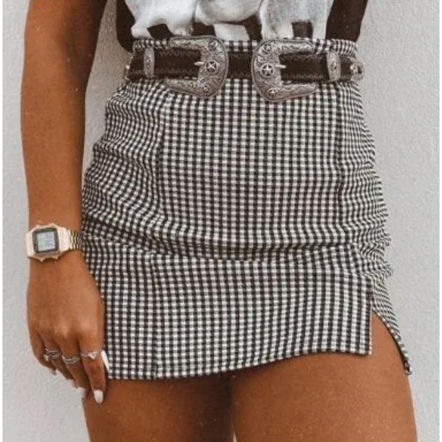 Saia Feminina Xadrez Curta com Fenda Preto e Branco Moda LLevo Very well made.