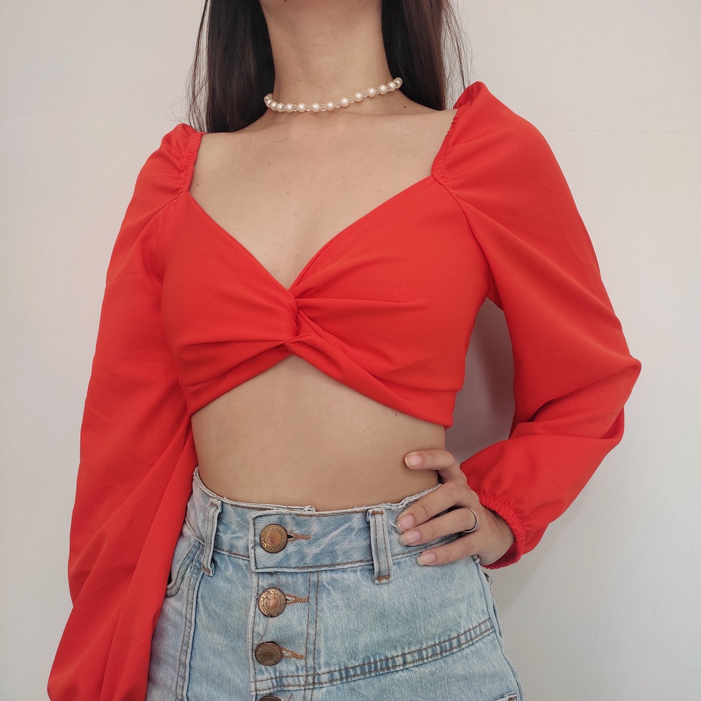 Cropped Manga Longa Blusa Cropped Roupas Femininas Very well made.