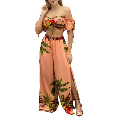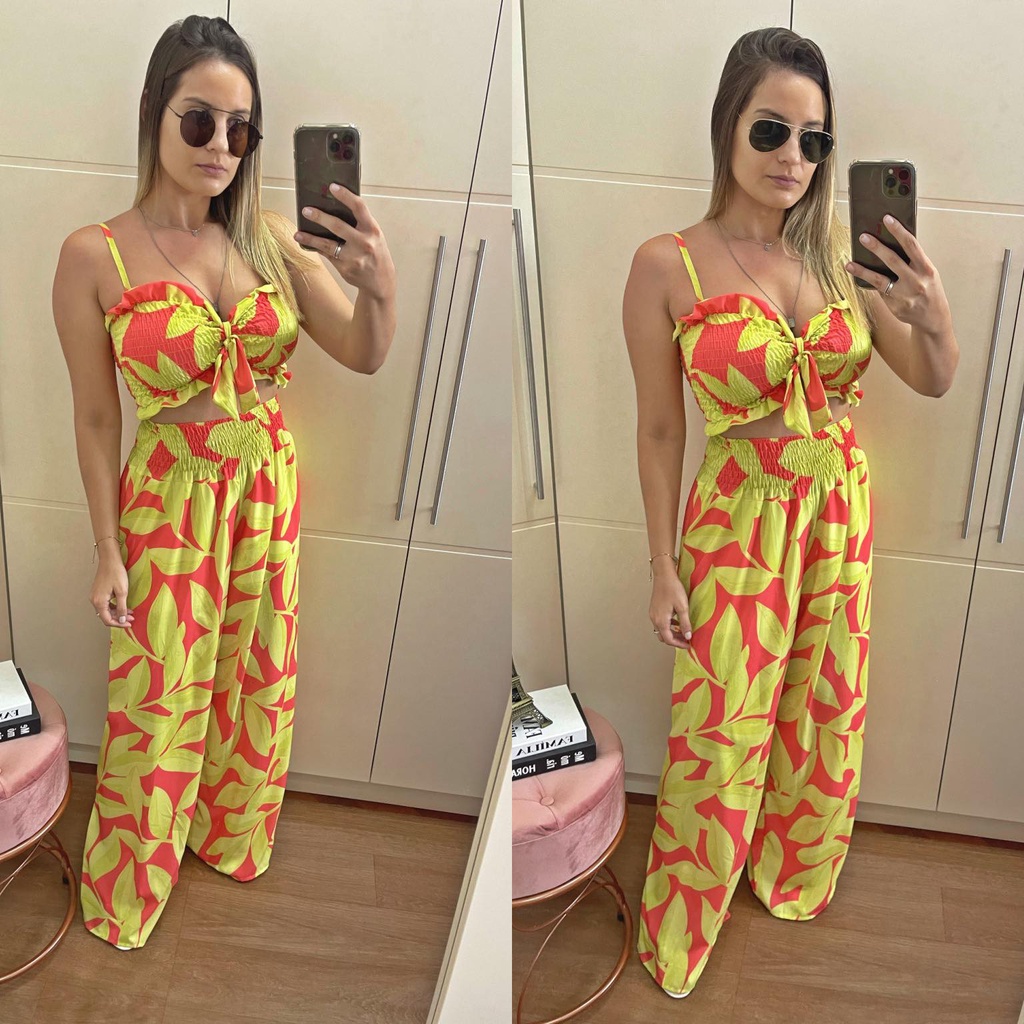 Conjunto Feminino Cal a Pantalona com Cropped Estampado Atacado Very well made.