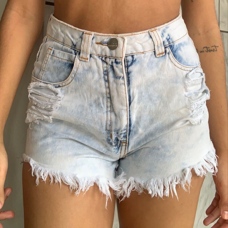 Short Jeans Mom Destroyed Feminino Cintura Alta Azul Claro Lady Very well made.