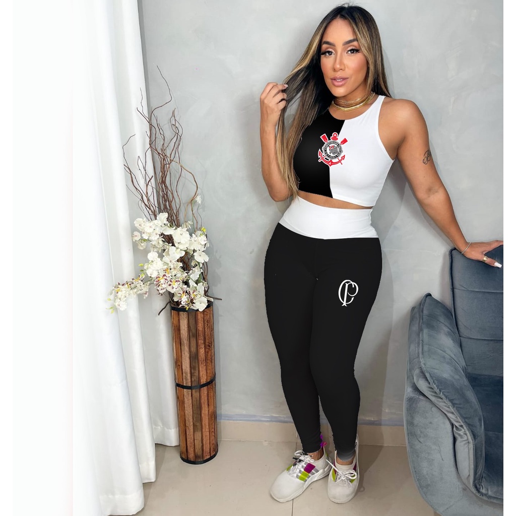 CONJUNTO FITNESS CORINTHIANS PRETO E BRANCO Very well made.
