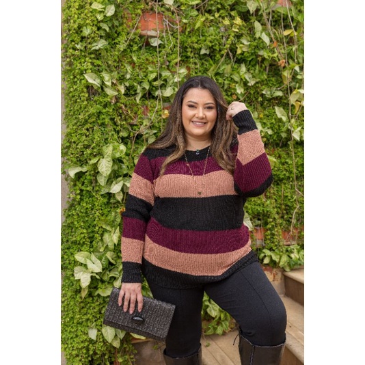 Blusa De Frio Feminina Plus Size Tricot Bordada A M o Grossa MBiselli Malhas Very well made.