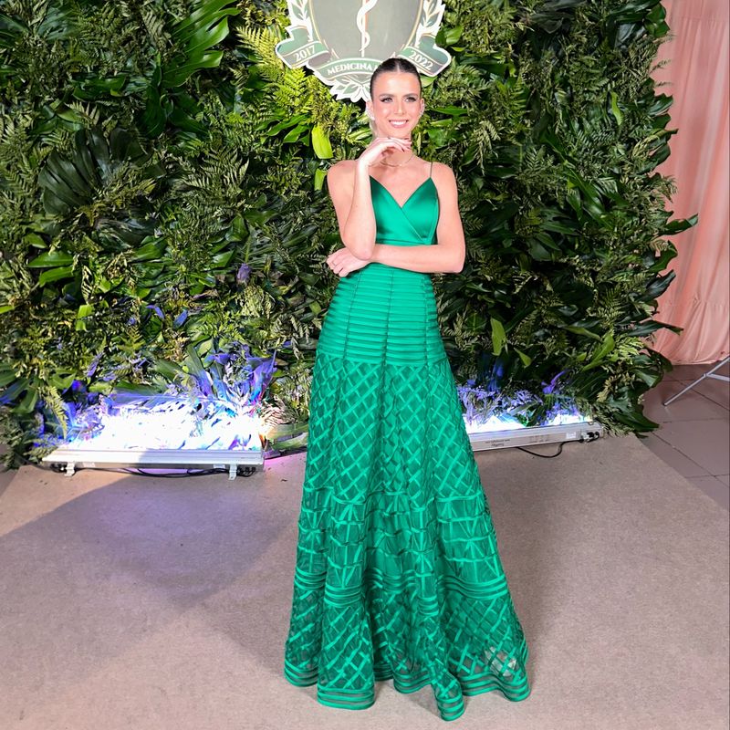 VESTIDO LONGO FITAS EM CETIM DUCHESE C VIES ROSE THAYS TEMPONI Very well made.