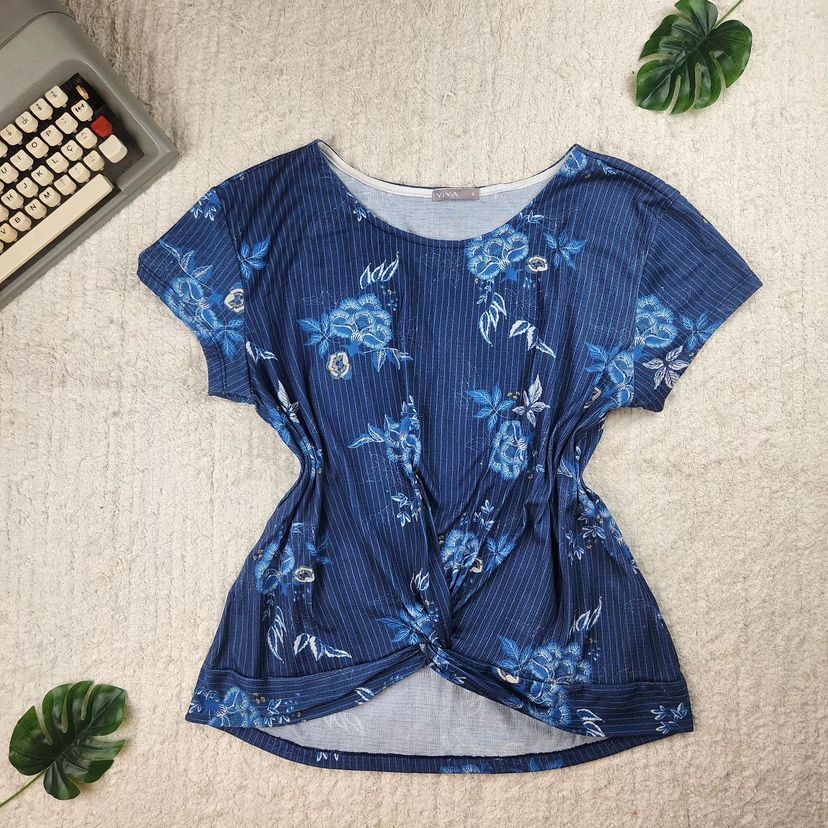 Blusa Azul Marinho Florida Feminina G Ver o Primavera Brech ENVIO IMEDIATO Very well made.