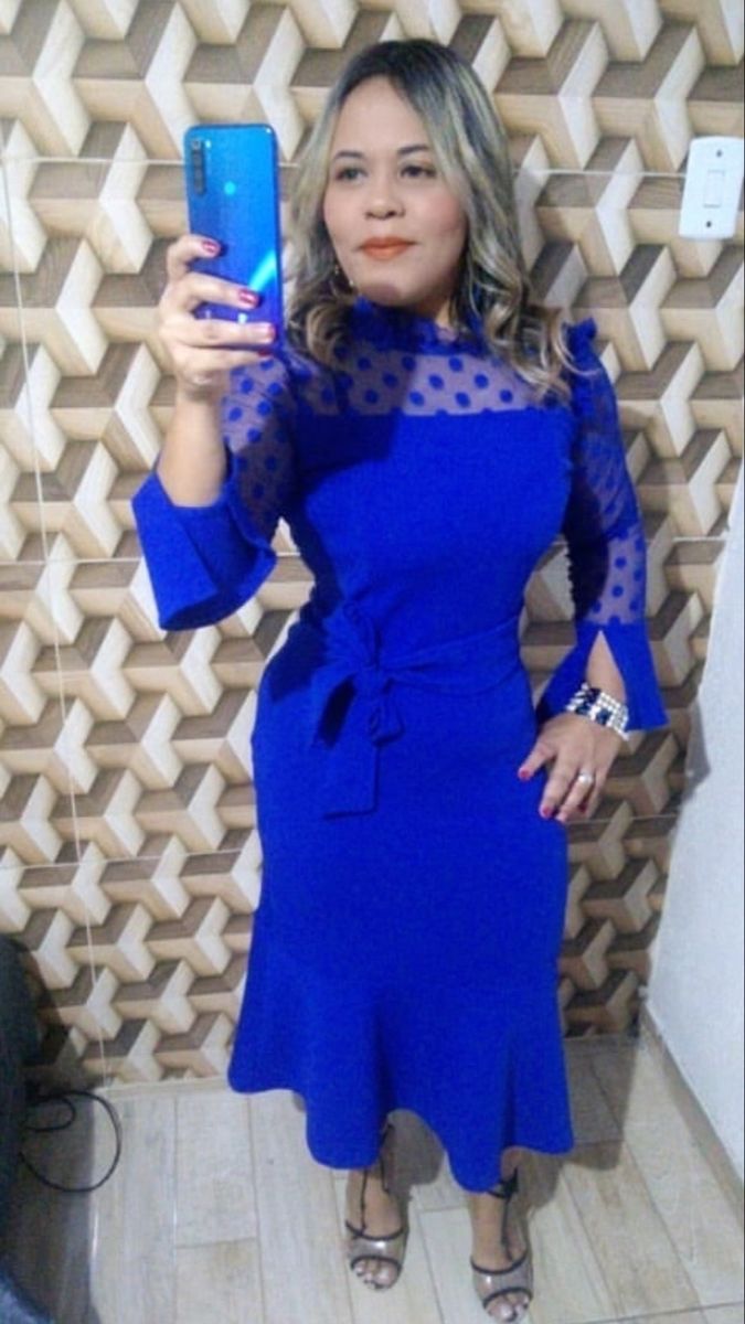 Aquila Vestido Azul Royal com Tule Rendado Moda Evangelica Very well made.