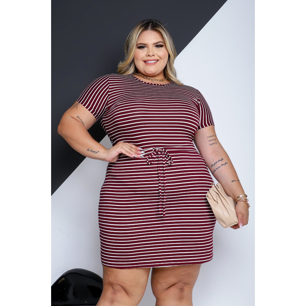 Vestido Plus Size de Malha Listrado Ajuste na Cintura Moda Casual Very well made.