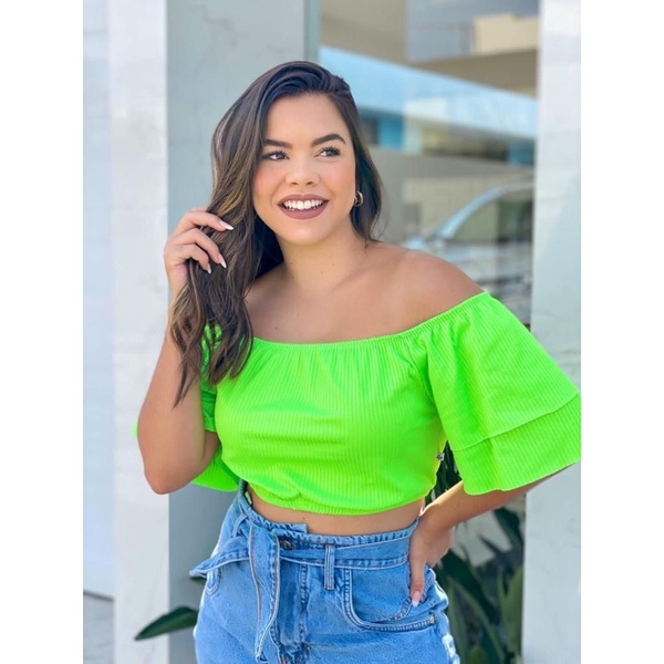 Blusa neon Blusinha top Blusinha Bulfante top malha canela T shirt neon Very well made.