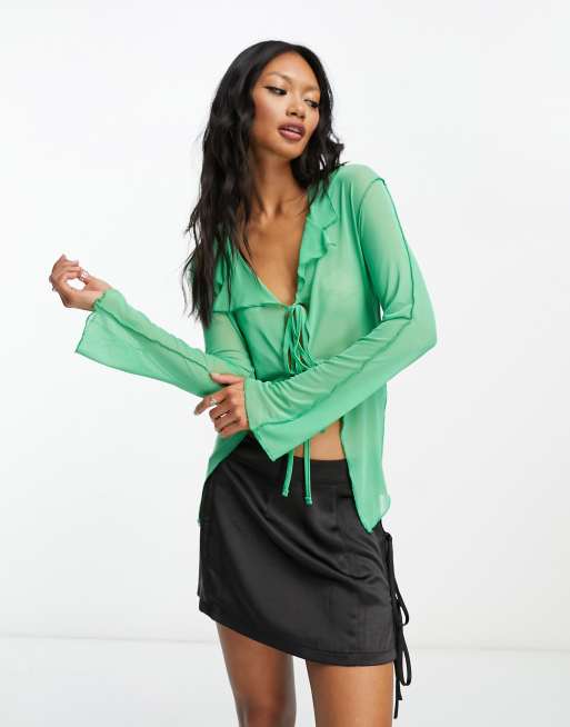 Blusa verde con detalle de lazada de malla de Neon Nylon Very well made.