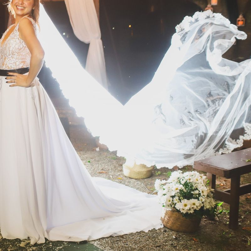Vestido de Noiva com Mantilha de 3m e Cinto Remov vel Vestido de Festa Feminino Maison Linda Sposa Usado 87819363 enjoei Very well made.