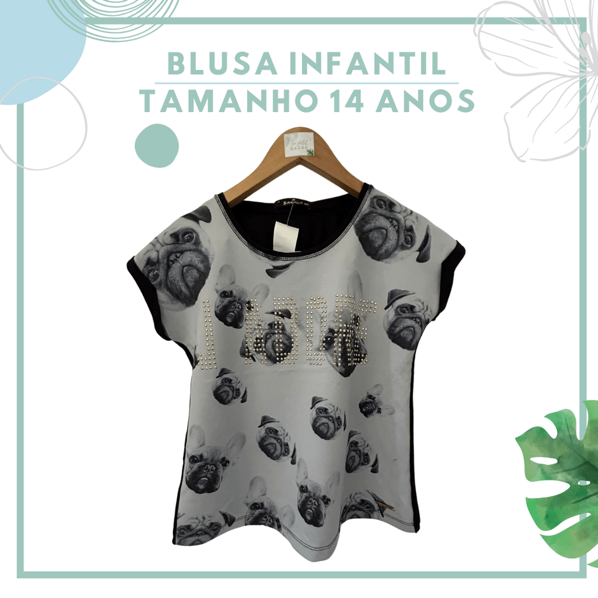 Blusa Infantil Feminina Estampa Pug Tamanho 14 Anos Roupa Very well made.