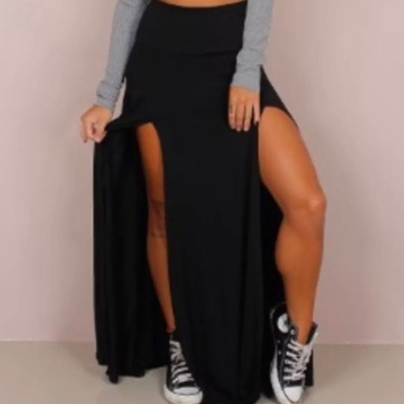 Saia Preta Longa com Duas Fendas Saia Feminina Usado 50223558 enjoei Very well made.