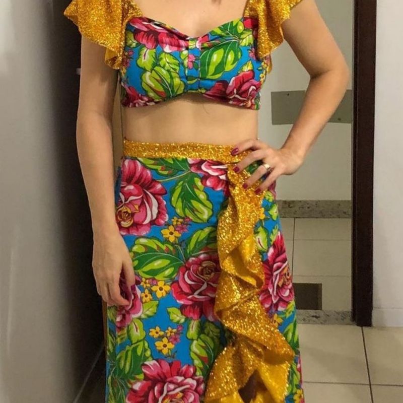 Conjunto saia envelope e blusa ciganinha Fantasia Carmem Miranda Very well made.