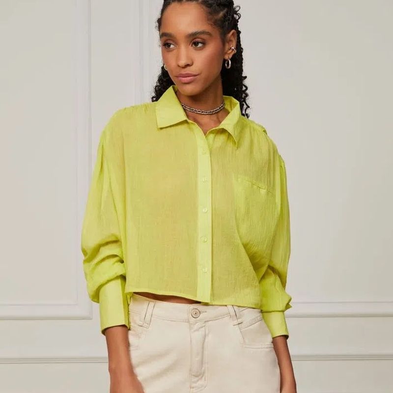 Camisa Feminina De Voil Gaze Manga Longa Animale Jeans Verde Very well made.