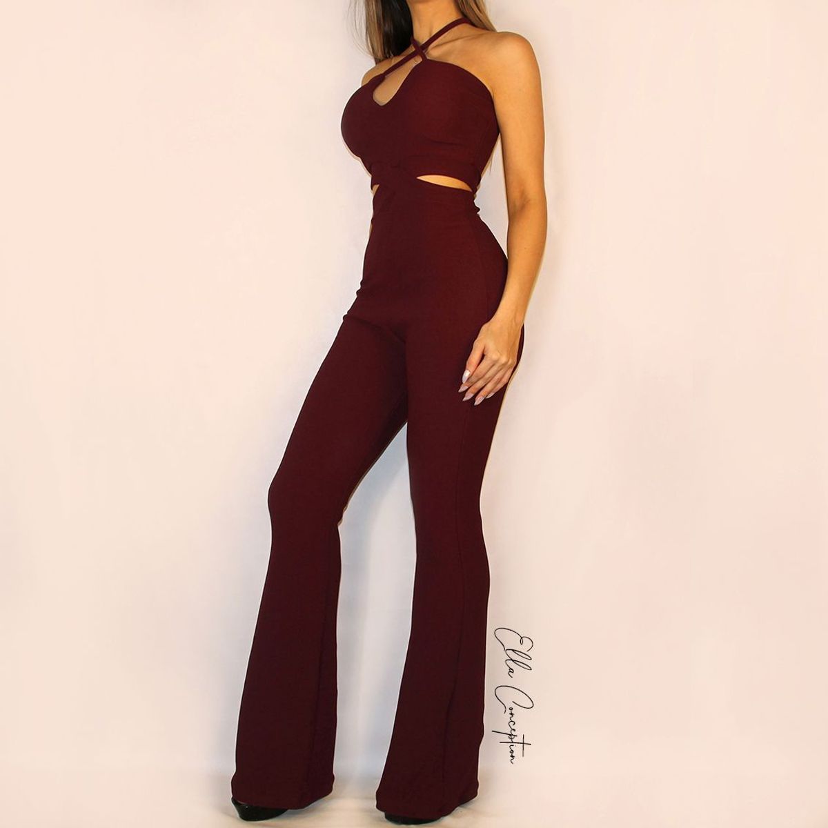 Macac o Flare Bord Vinho Marsala Longo Recortes Na Cintura Decote V Elegante com Bojo Macac o Feminino Ella Conception Nunca Usado 32829090 Very well made.
