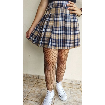 Saia Curta Feminina Maia Xadrez Bege Fernanda Ramos Store Very well made.