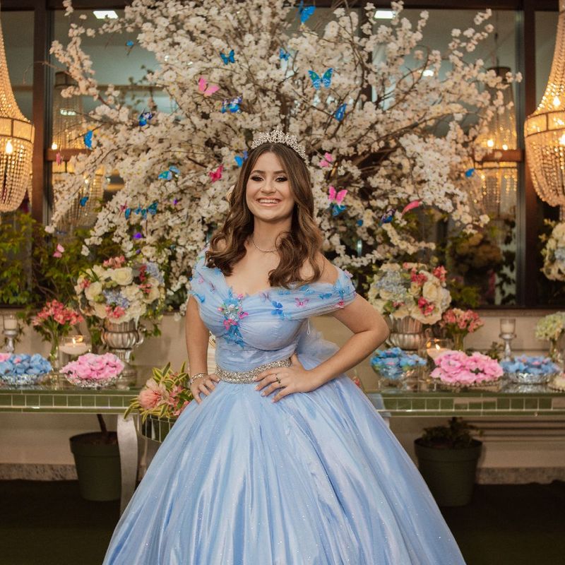 Vestido de Debutante Azul Claro com Borboletas e La o Atr s Remov veis Vestido de Festa Feminino Usado 94891352 enjoei Very well made.