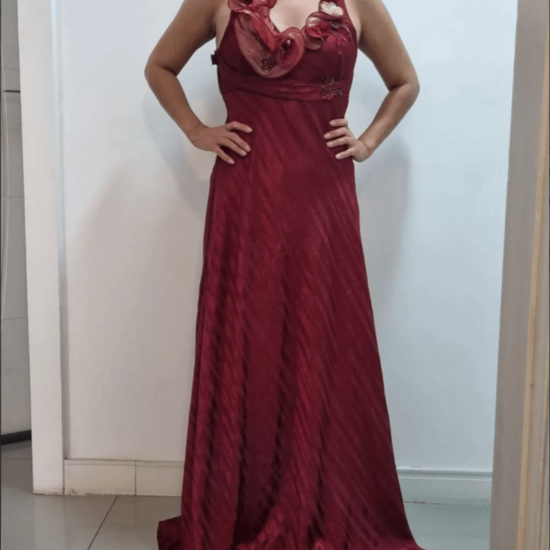 Vestido de festa Longo Talita Bordado Mrasala Vinho Bordo Very well made.