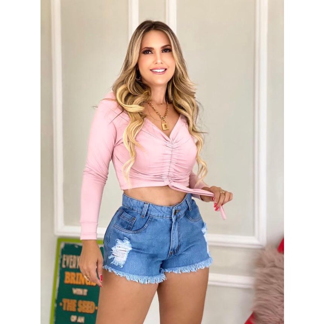 Shorts jeans b sico desfiado sem lycra feminino Shopee Brasil Very well made.