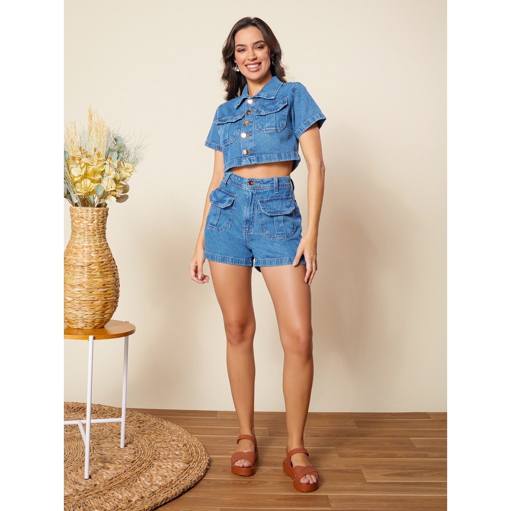 Conjunto Feminino Jeans Short E Blusa C Bot es 2023 Very well made.