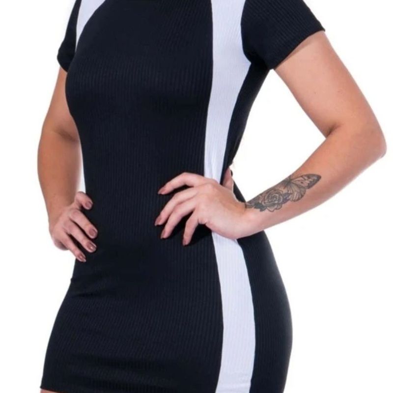 Vestido preto com faixa branca lateral Casas Bahia Very well made.