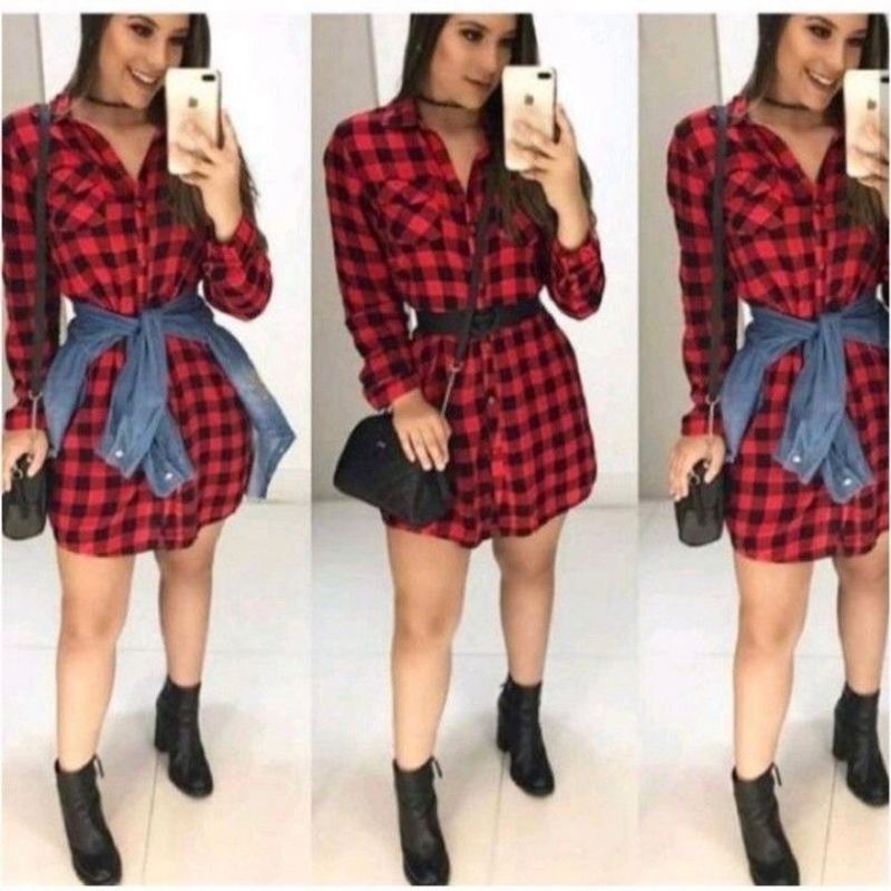 Vestido Chemise Plus Size Xadrez Vermelho Flanelado Bot o Encapado Very well made.