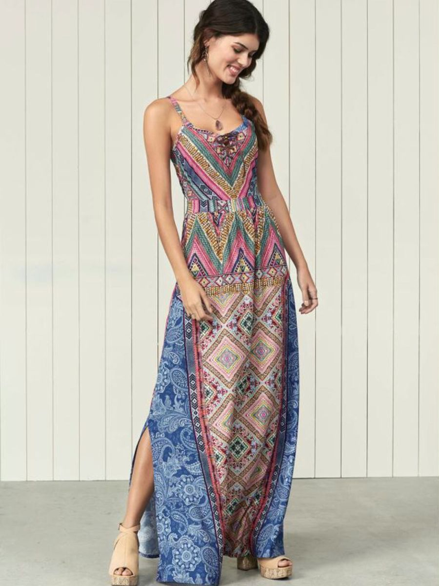 Vestido Longo Feminino Estampado Fenda Frontal Em Viscose Enfim Very well made.