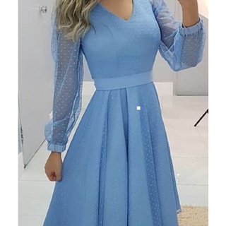 Vestido Rodado Manga 3 4 Moda Evangelica Casual Gode Cinto Very well made.