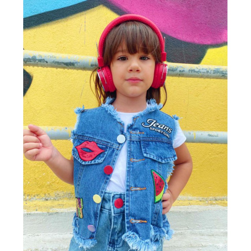 Colete jeans infantil destroyed com patchs blogueirinha mini diva Very well made.