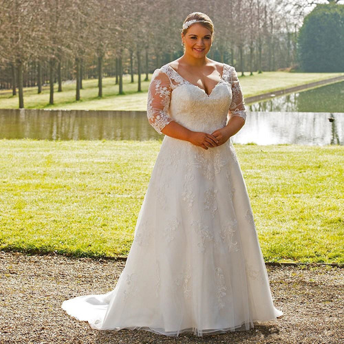 Vestido De Noiva Manga Plus Size Cauda G2 Casamento Pronta Entrega Very well made.