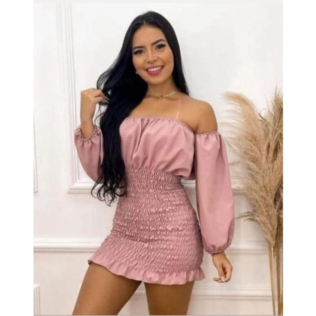 Vestido curto com babado ombro rodado ciganinha tecido liso R Very well made.