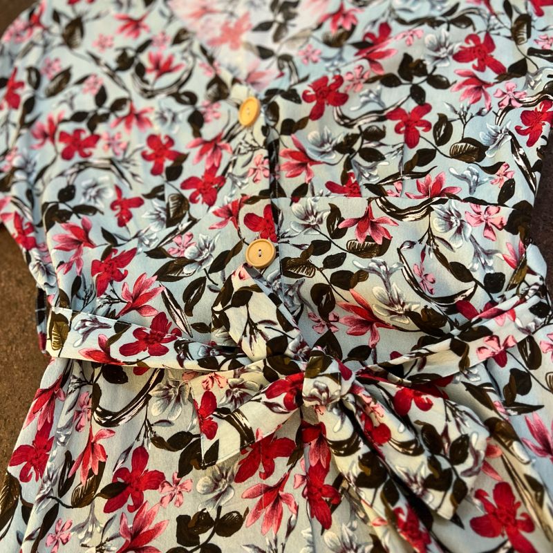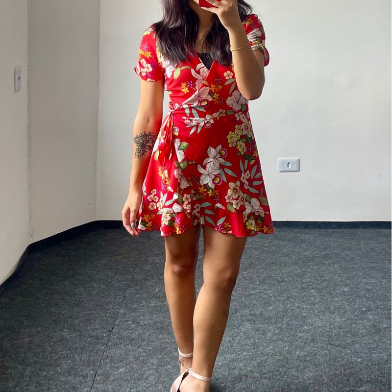 Vestido Florido Zara Bot o com Faixa Manga Charmosa e Abertura Very well made.