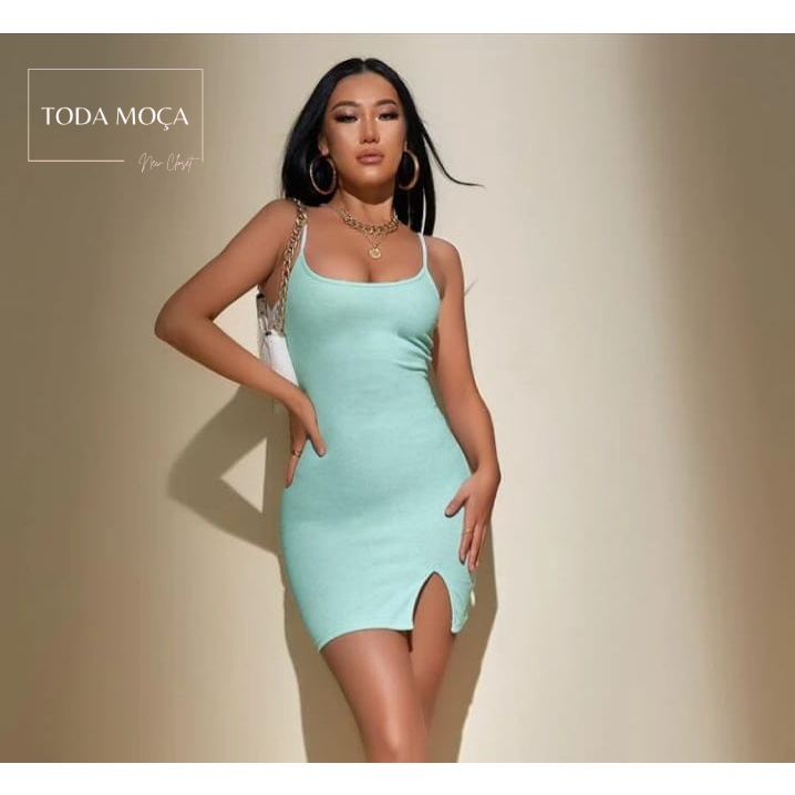 Vestido feminino Colado Curto De Alcinha canelado com Fenda Very well made.