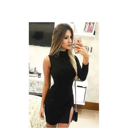 Vestido gola alta fenda e uma s manga WNK V0074 Shopee Brasil Very well made.