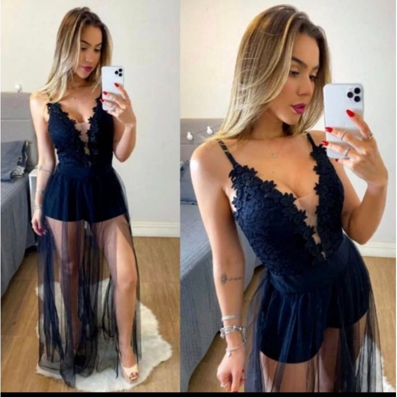 Promo o Macaquinho Vestido Longo Tule Transparente Festas Very well made.