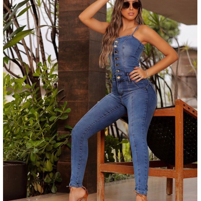 Macac o Jeans Longo Feminino Skinny Com Elastano e Al a Regul vel Very well made.