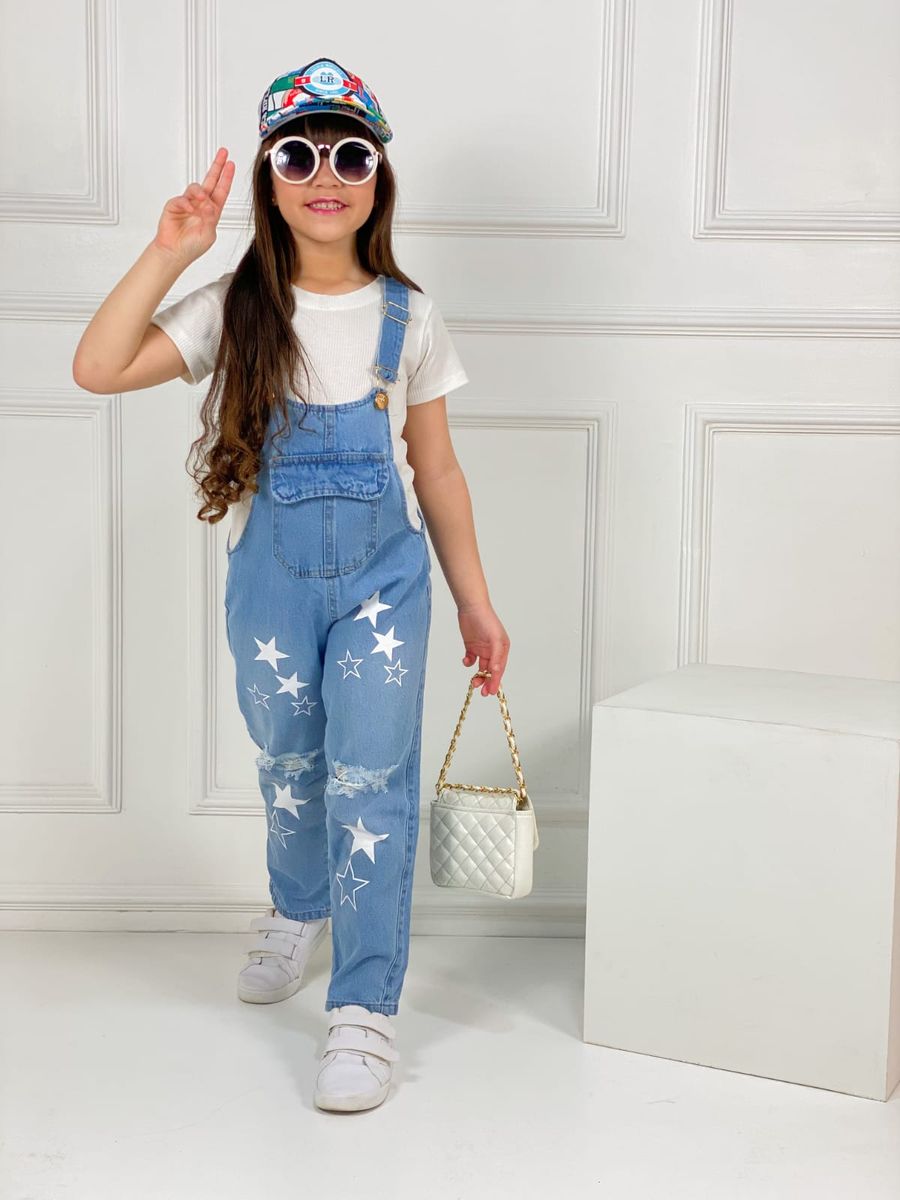 Macac o Jeans Infantil de Menina da M lagah Tipinhos Moda Very well made.