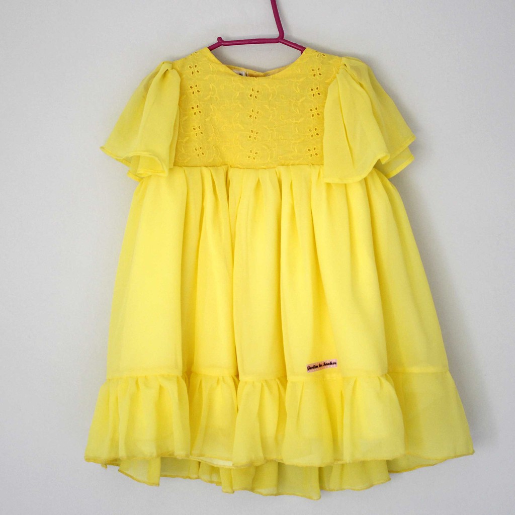 Vestido Luxo Amarelo para Beb s de 1 ano Anivers rio manguinha barrado de babado lese musseline Festa Very well made.