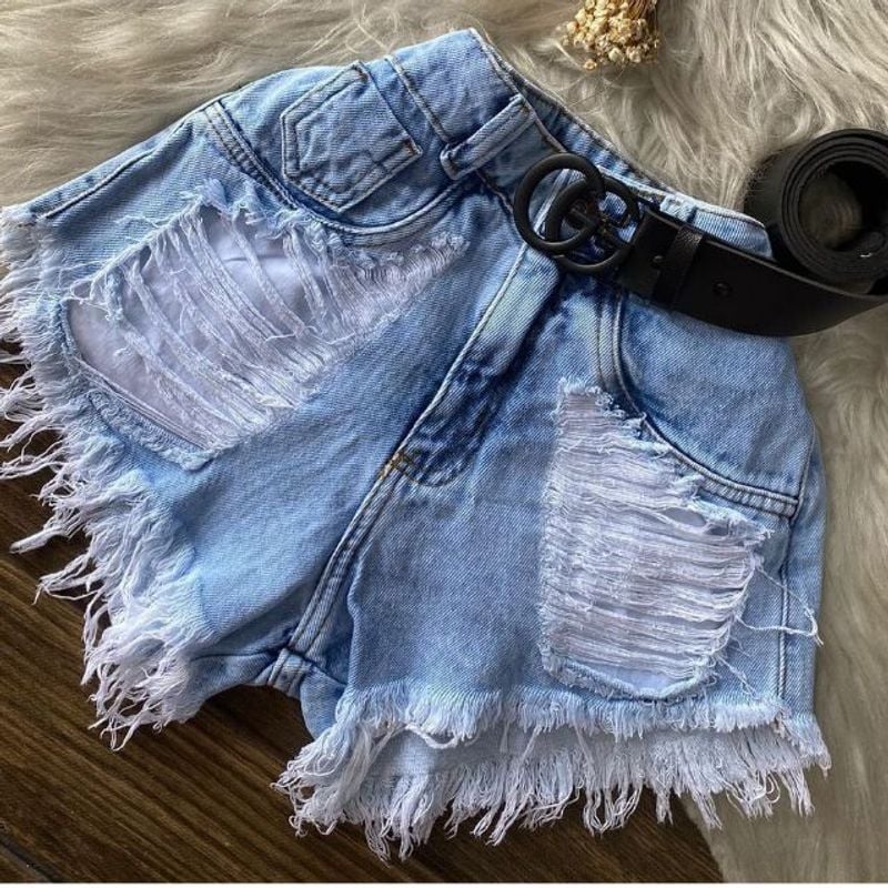 Short Feminino Jeans Desfiado Rasgado Shots Cintura Alta Hot Pants Very well made.