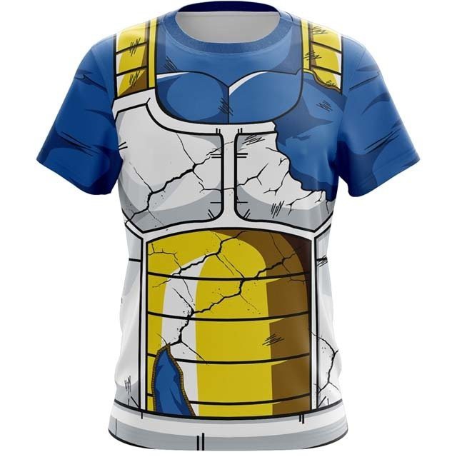 Camiseta masculina de anime Dragon ball super vegeta estilo armadura de batalha 3D cosplay camisa geek Very well made.