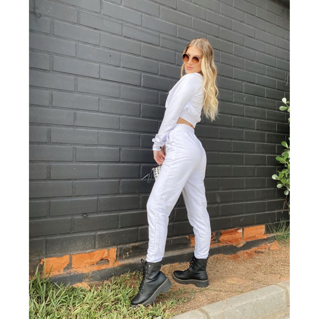 Conjunto Moletom Feminino Cropped e Cal a Moletom Branco Blogueira Very well made.