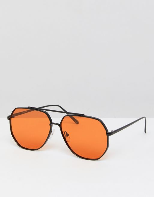 ASOS Black Metal Aviator Fashion Sunglasses With Orange Lens Very well made.