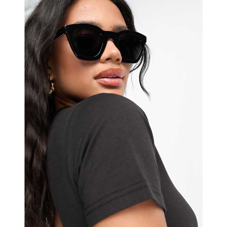 ASOS DESIGN cat eye bevelled sunglasses in shiny black Very well made.