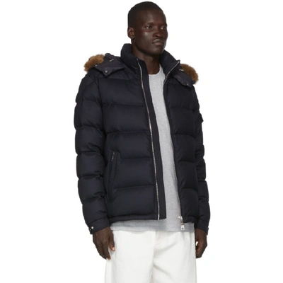 Allemand Coyote Fur trimmed Down Jacket In Navy Very well made.