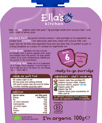 Dairy Free Pear Fig Porridge Baby Breakfast Ella s Kitchen Very well made.